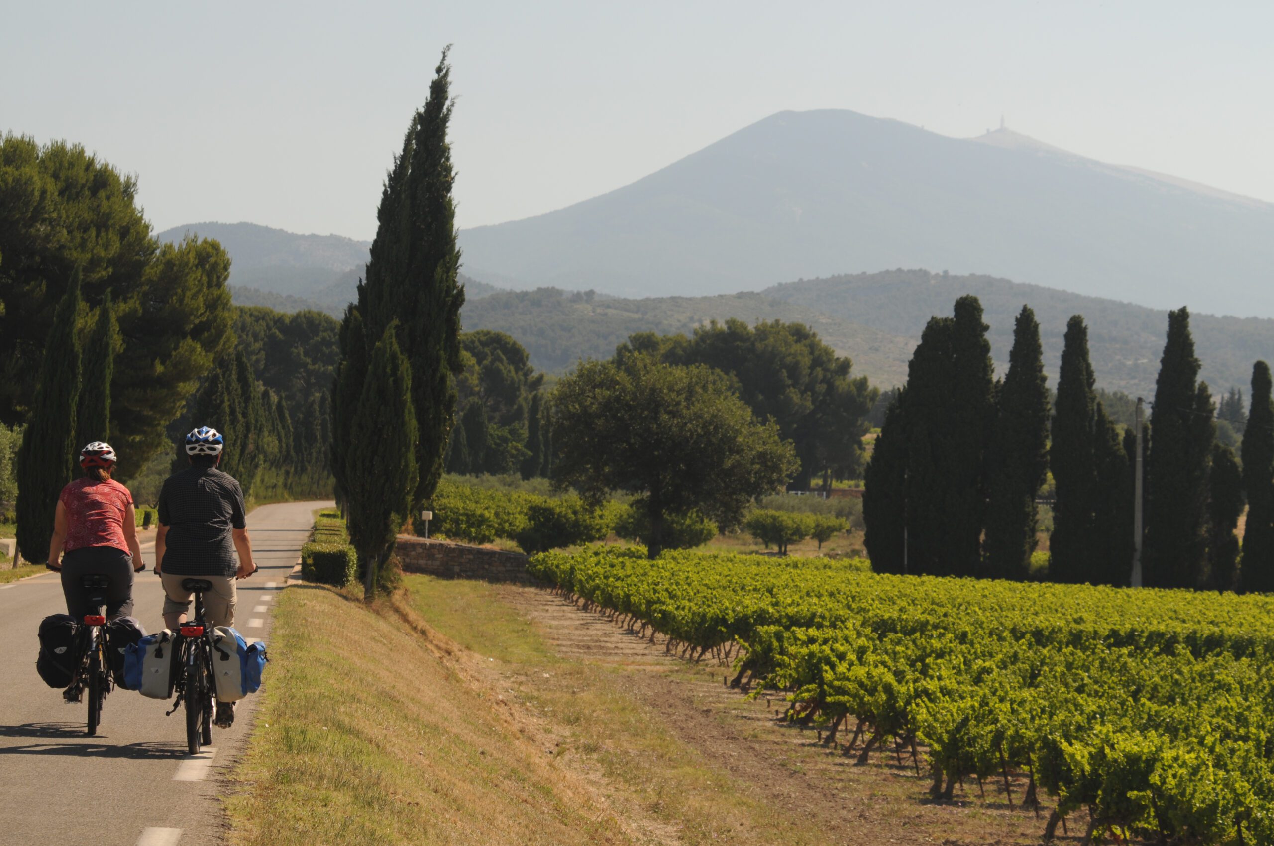 - Cycling in a glorious wine landscape with Mont Ventoux in the background